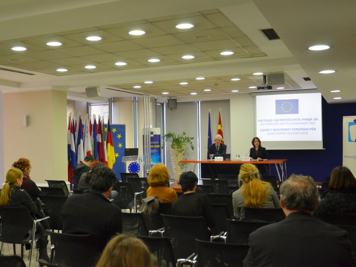 The award was promoted today (24 March 2015) at EU Infocenter in Skopje by Biljana Petkovska, director of MIM and Robert Liddell, Head of Political and Justice and Home Affairs, Information and Communication at EU Delegation.