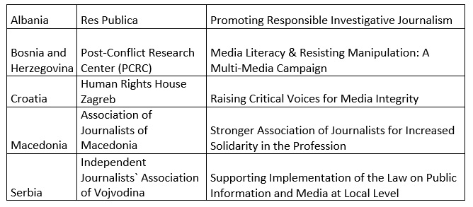 Five proposals from CSOs were selected to implement advocacy campaigns and organize actions aiming to support free, independent, pluralistic and viable media in five countries: