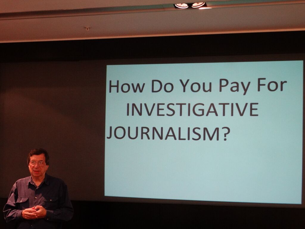 PHOTO: David Leigh talks on the seminar for investigative journalists from SEE (London, September 2015)