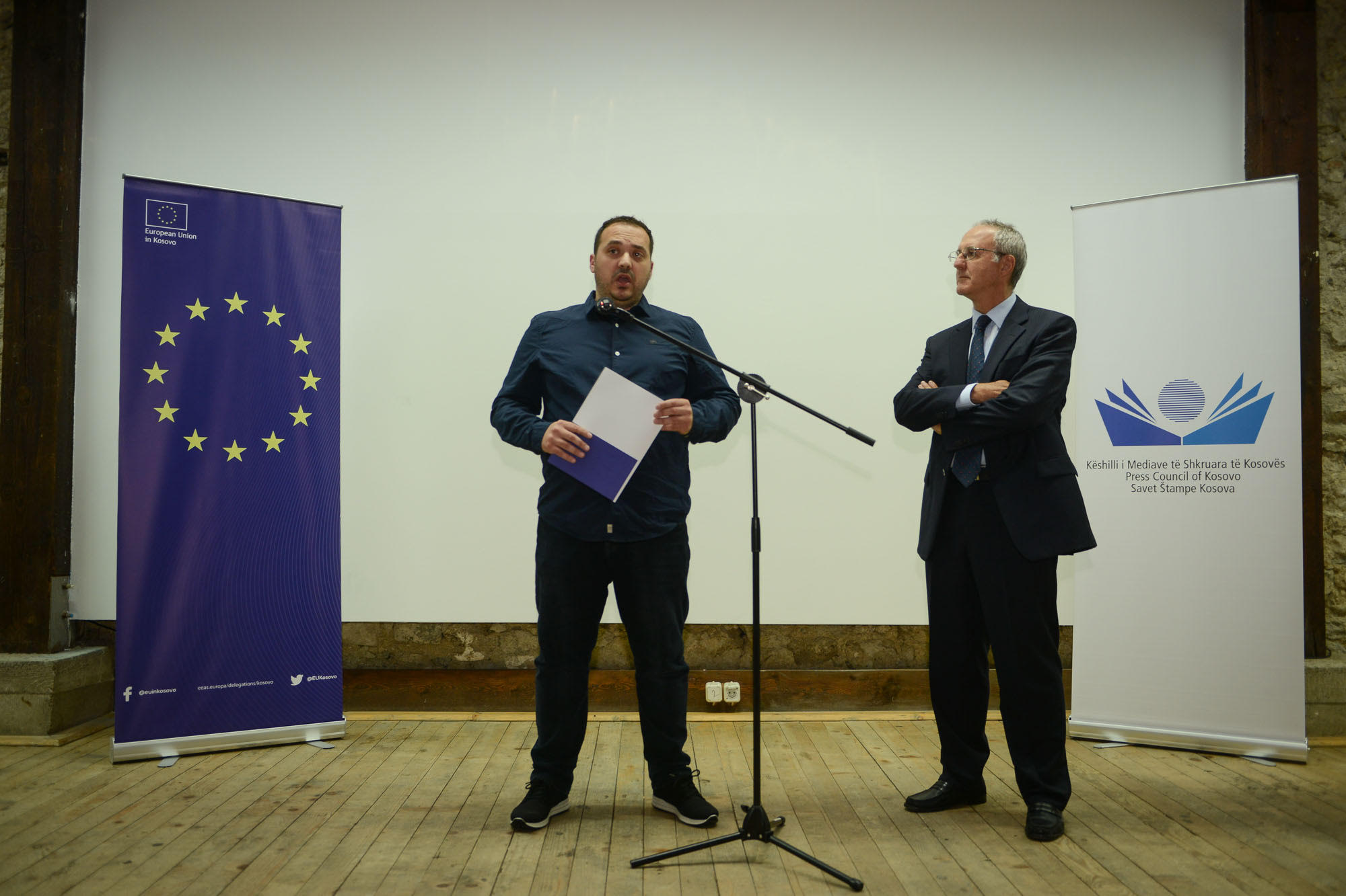 This year, the jury members were Imer Mushkolaj, analyst/Chairman of Board of Press Council of Kosovo, Anamari Repic, journalist/ deputy director of Radio Television of Kosovo, Besa Luci, journalists/ Editor in chief of Kosovo 2.0, Lindita Tahiri, professor at University of Prishtina, and Evliana Behrani, chief editor at news portal InfoGlobi.