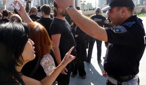 Riot police prevented journalists and intellectuals from reaching their protest destination, the Museum of the Macedonian Struggle for Independence.