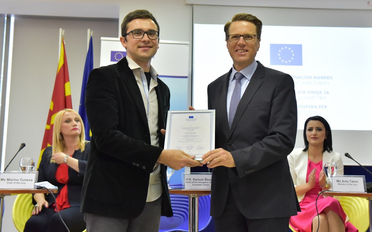 Journalist Aleksandar Dimitrievski won the first prize on this year’s contest “EU Award for Investigative Journalism" for the online database and the series of texts regarding crop and livestock subsidies, which were published on the web page "Prizma". The investigative story brings to the fore comprehensive and systematised data concerning the allocation of the 3% of the state budget in the form of subsidies for the crop and livestock production. Furthermore, it analyses the potential connection between part of the subsidies beneficiaries and the executive branch of the government and the suspicious ownership structure of certain companies which have received subsidies.