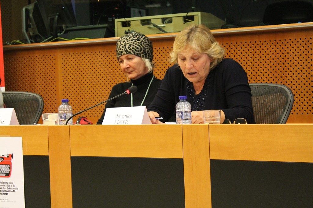 Members of the research team of the SEE Media Observatory presented the findings of the media integrity research in the European Parliament at the conference organised and host by the Member of the European Parliament from Slovenia Tanja Fajon.