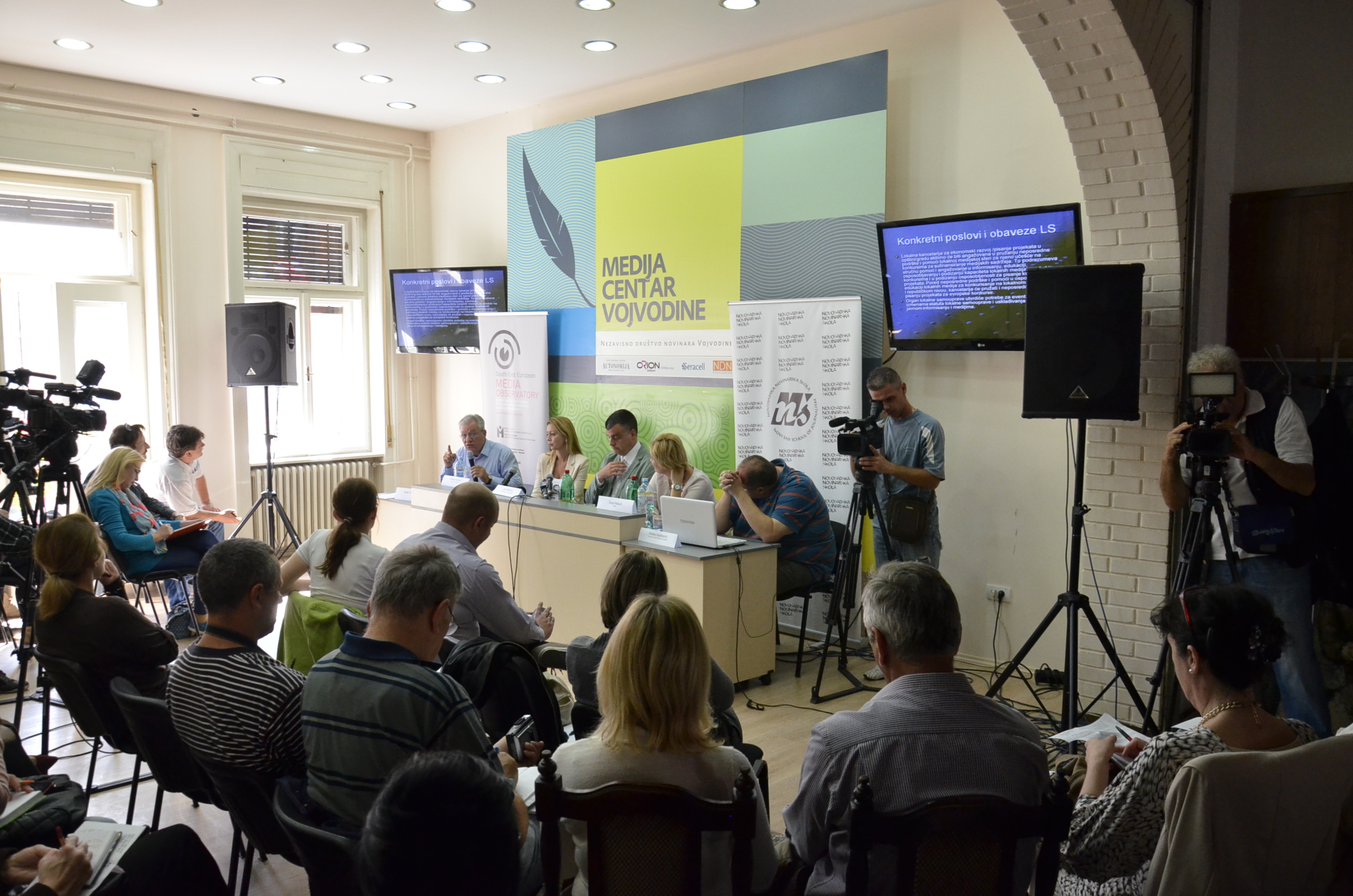 In front of more than 60 representatives of local media the following panelists spoke: State Secretary at the Ministry of Culture and Information Sasa Mirkovic, representative of the Agency for Privatization Branka Krkljes, Chairman of the Executive Board of the Independent Association of Vojvodina Journalists Nedim Sejdinovic, and Tanja Maksic from BIRN Serbia.