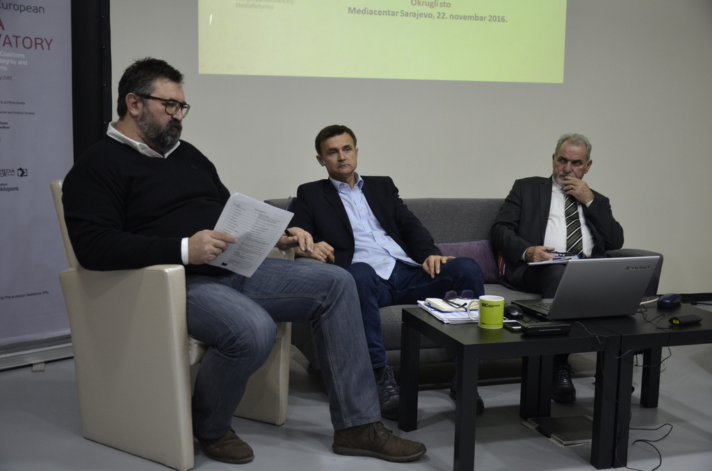 The conclusions of the research of Mediacentar Sarajevo, carried out as part of the SEE Media Observatory project, showed it is highly questionable whether and to what extent does the government funding for media in Bosnia and Herzegovina promote public interest, freedom of expression and media pluralism. Starting from this conclusion, Mediacentar organised roundtable “Who Looks after Public Interest when the Government Finances Media Operations?”, held on 22 November 2016, where the issues related to transparency of these funding patterns and bringing public interest back into financial relations between the public sector and media were discussed.