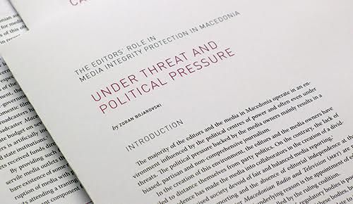 The majority of the editors and the media in Macedonia operate in an environment influenced by the political centres of power and often even under threats. The political pressure backed by the media owners mainly results in a biased, partisan and non-comprehensive journalism.