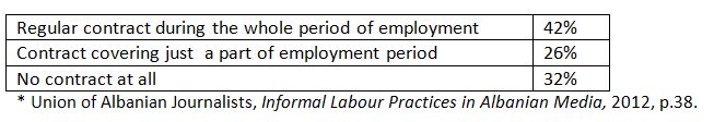 According to reports of the trade union of journalists, most of the journalists work without contracts or with formal contracts, which can be interrupted in an arbitrary way.