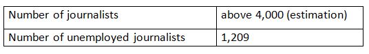 Journalists opt for a strike only when the situation becomes absolutely unbearable, but even then their strikes are rarely effective. Reason lies in oversupplied job market. For instance, in 2011, the largest media outlet (public broadcaster RTS) received 17,000 applications for announced 100 vacancies for young professionals.