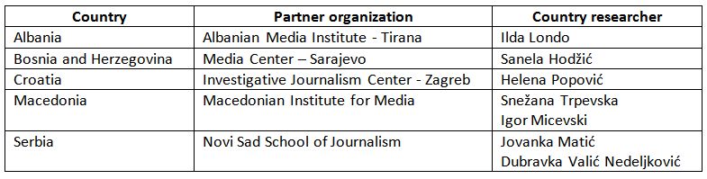 The project advisory board assisted in drafting and implementation of the research by reviewing the methodology and sections of the research reports. The board included Sandra B. Hrvatin, University of Primorska, Slovenia, Dušan Reljić, German Institute for International and Security Affairs, Germany, and Aidan White of Ethical Journalism Network. Sandra B. Hrvatin also participated in both research workshops and significantly contributed to the theoretical and comparative overview.