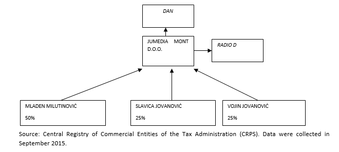 Dan, on the other hand, never searched for investors. Its publishing company Jumedia Mont, founded with a capital of dubious origin during the Slobodan Milošević’s dictatorship9 remained in possession of two individuals and their families – Mladen Milutinović and Duško Jovanović. Jovanović, who acted also as editor-in-chief of Dan, was murdered in a drive-by shooting at the front door of the paper’s offices on 28 May 2004. The case has not been fully resolved until today. Jovanović’s stake at the company now belongs to his wife and son.