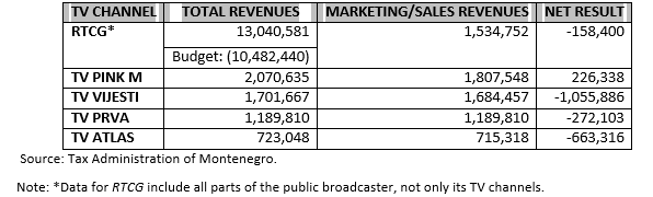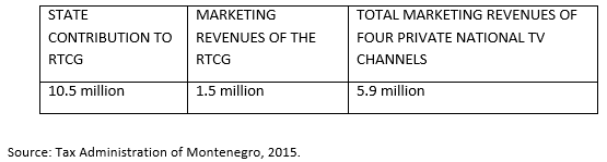 The state is already financing the public service broadcaster RTCG with approximately 10 million euro annually (1.2 percent of the state budget), which is more than what the entire advertising market is worth. Moreover, TVCG equally competes on the market for advertising funds.
