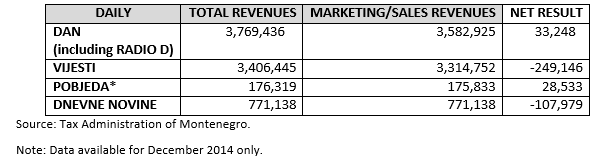Table 3: FINANCIAL RESULTS OF MAJOR DAILIES IN 2014 (in euro)