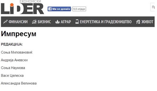 www.lider.mk has published their ownership details: there is no editor, no publisher, no registered company, no director… Just a couple of names who work as journalists. This is the case with the majority of news portals in Macedonia – on their web pages you can’t see anything related to the media ownership!