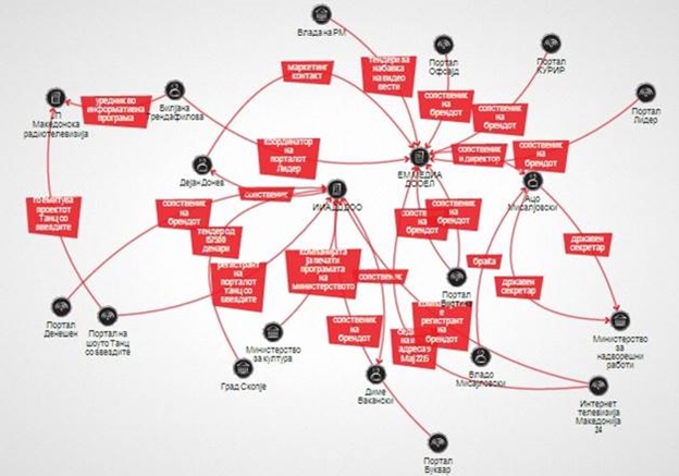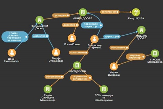 On the picture above you can see the scheme on how we tried to discover the ownership of one of the biggest and most influential pro-governmental media in Macedonia,